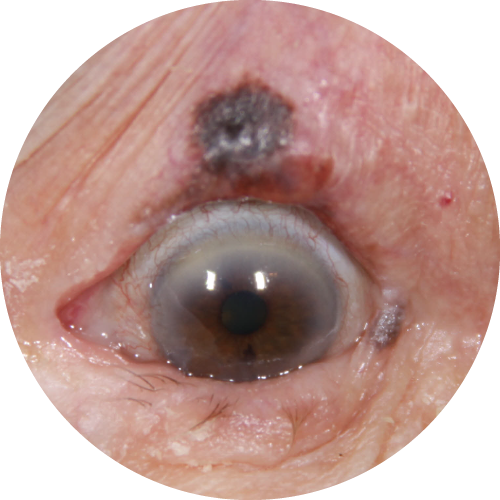 Le mélanome cutané est extrêmement rare au niveau des paupières (moins de 1% des tumeurs palpébrales). Il s’agit d’une tumeur maligne qui apparait sur une peau exposée de manière chronique au soleil, dérivée des cellules pigmentées de la peau (mélanocytes épidermiques), associées à un degré élevé de dommages cumulatifs causés par le soleil au derme.
